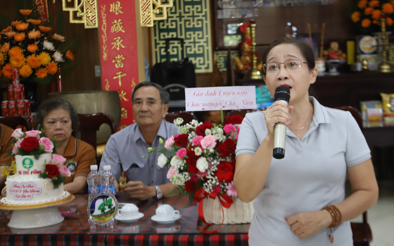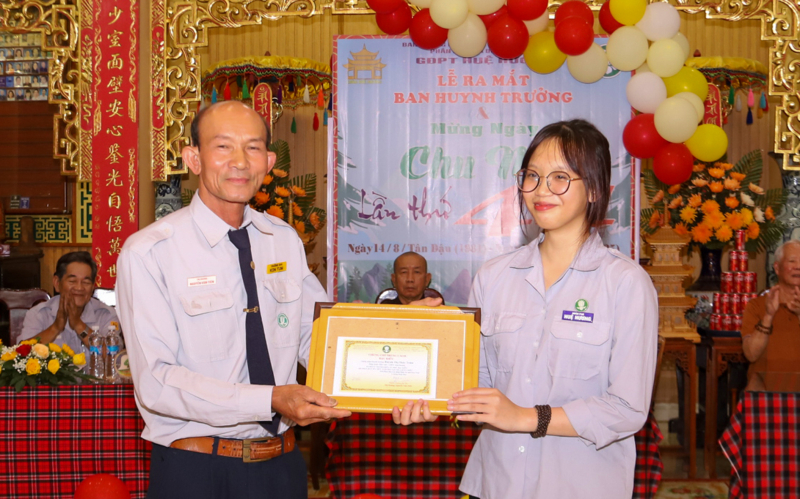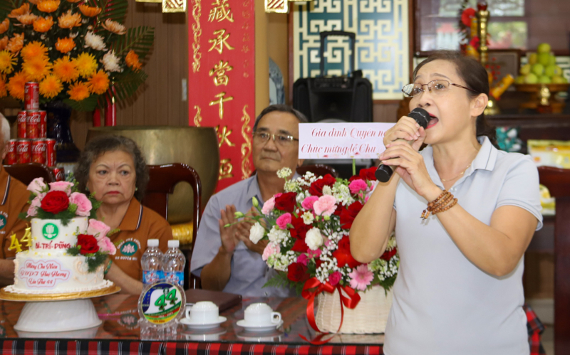 Phát biểu chúc mừng, HTr cấp Tấn Thị Hoàng – Nguyễn Văn Tiên, biểu dương tinh thần gắn bó, đoàn kết của đơn vị, đồng thời mong rằng Gia đình Phật tử Huệ Hương sẽ tiếp tục phát triển vững mạnh, là điểm sáng trong công tác giáo dục thanh thiếu Phật tử tỉnh nhà.