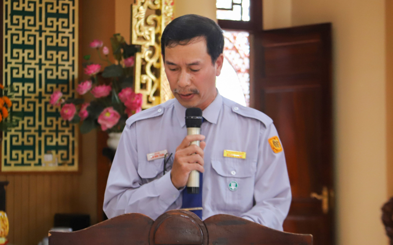 Buổi lễ khép lại trong không khí trang nghiêm, hoan hỷ. Huynh trưởng cấp Tín Vạn Hòa – Lâm Minh Thuận đại diện Ban Tổ chức dâng lời cảm tạ, tri ân chư Tôn đức, quý khách mời, Huynh trưởng, đoàn sinh và Phật tử đã về tham dự, góp phần làm nên thành tựu viên mãn cho buổi lễ đầy ý nghĩa.