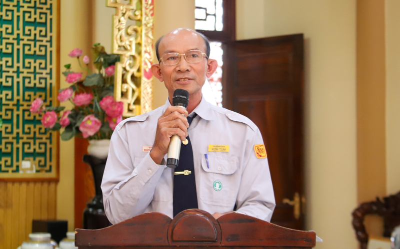 Về phía Phân ban Gia đình Phật tử Kon Tum có Huynh trưởng cấp Tấn Thị Hoàng – Nguyễn Văn Tiên, Trưởng Phân ban GĐPT Kon Tum; Huynh trưởng cấp Tấn Thị Tùng – Nguyễn Huy Vũ, Phó ban kiêm Ủy viên Nghiên huấn Phân ban; Bác Nguyên Giáo – Lê Hữu Khải, Thư Ký Ban Hộ trì Tam Bảo, chùa Huệ Hương cùng quý Huynh trưởng, Đạo tràng Phật tử và đoàn sinh Gia đình Phật tử Huệ Hương đồng tham dự.