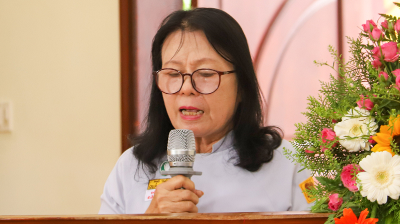 HTr cấp Tín Đồng Tuệ - Đặng Yến, Phó Thư ký kiêm UV nghiên Huấn PB GĐPT tỉnh, thông qua Nghị quyết Hội nghị.