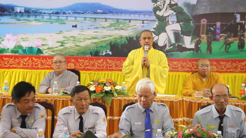 HTr cấp Tấn Thị Hoàng – Nguyễn Văn Tiên, Phó Thường trực PB GĐPT tỉnh, phát biểu khai mạc Hội Nghị