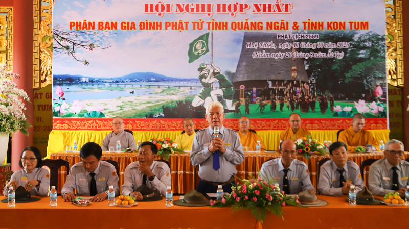 Thượng tọa nhấn mạnh, sự kiện hợp nhất Phân ban Gia đình Phật tử Quảng Ngãi và Kon Tum hôm nay là một dấu mốc quan trọng, thể hiện tinh thần “hòa hợp, đoàn kết, trưởng dưỡng đạo tâm – trang nghiêm Giáo hội”. Đây không chỉ là sự kết nối về mặt hành chánh, mà còn là sự hòa quyện của tình Lam, tình đạo và nghĩa đồng hành trên con đường phụng sự.