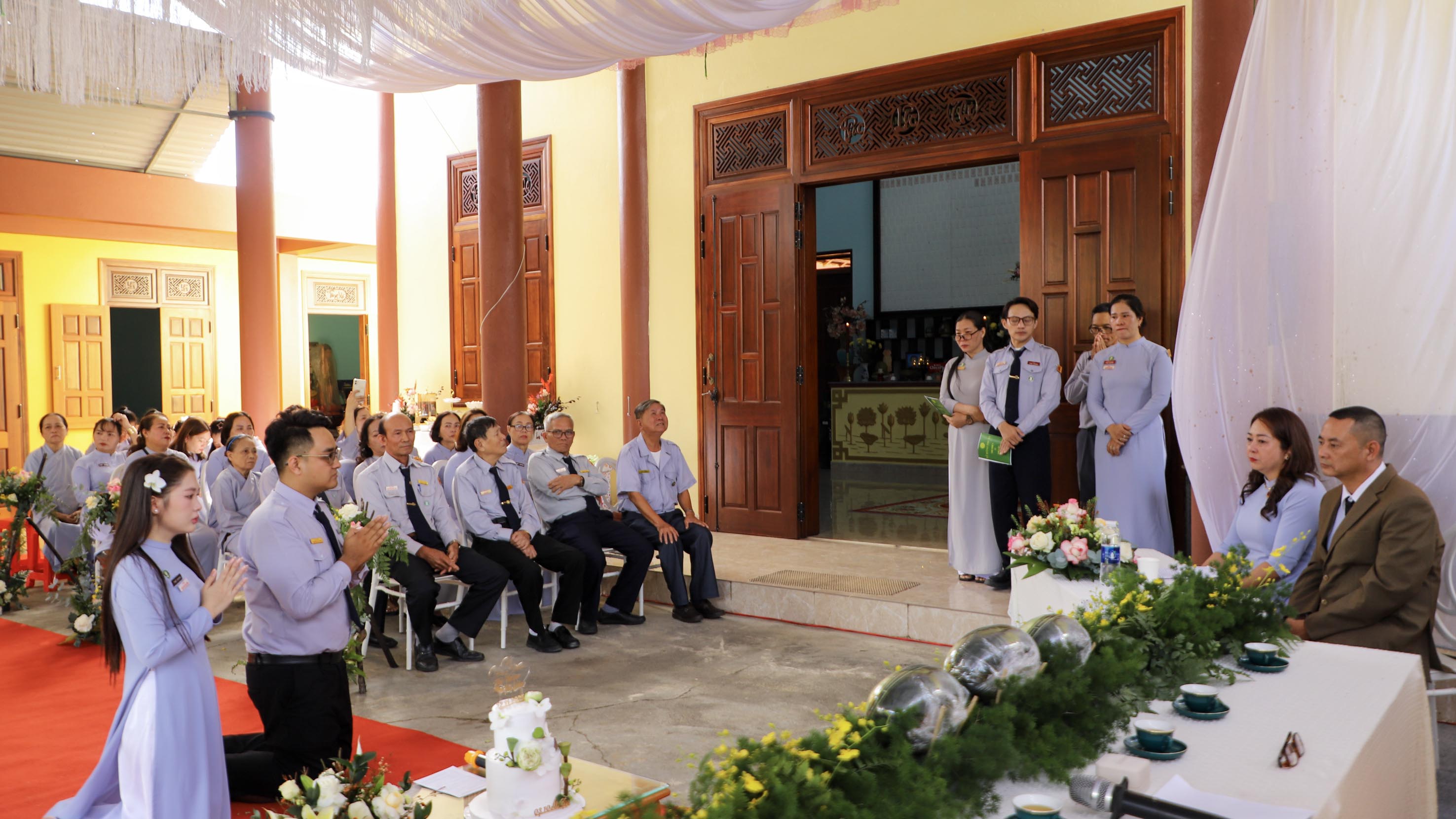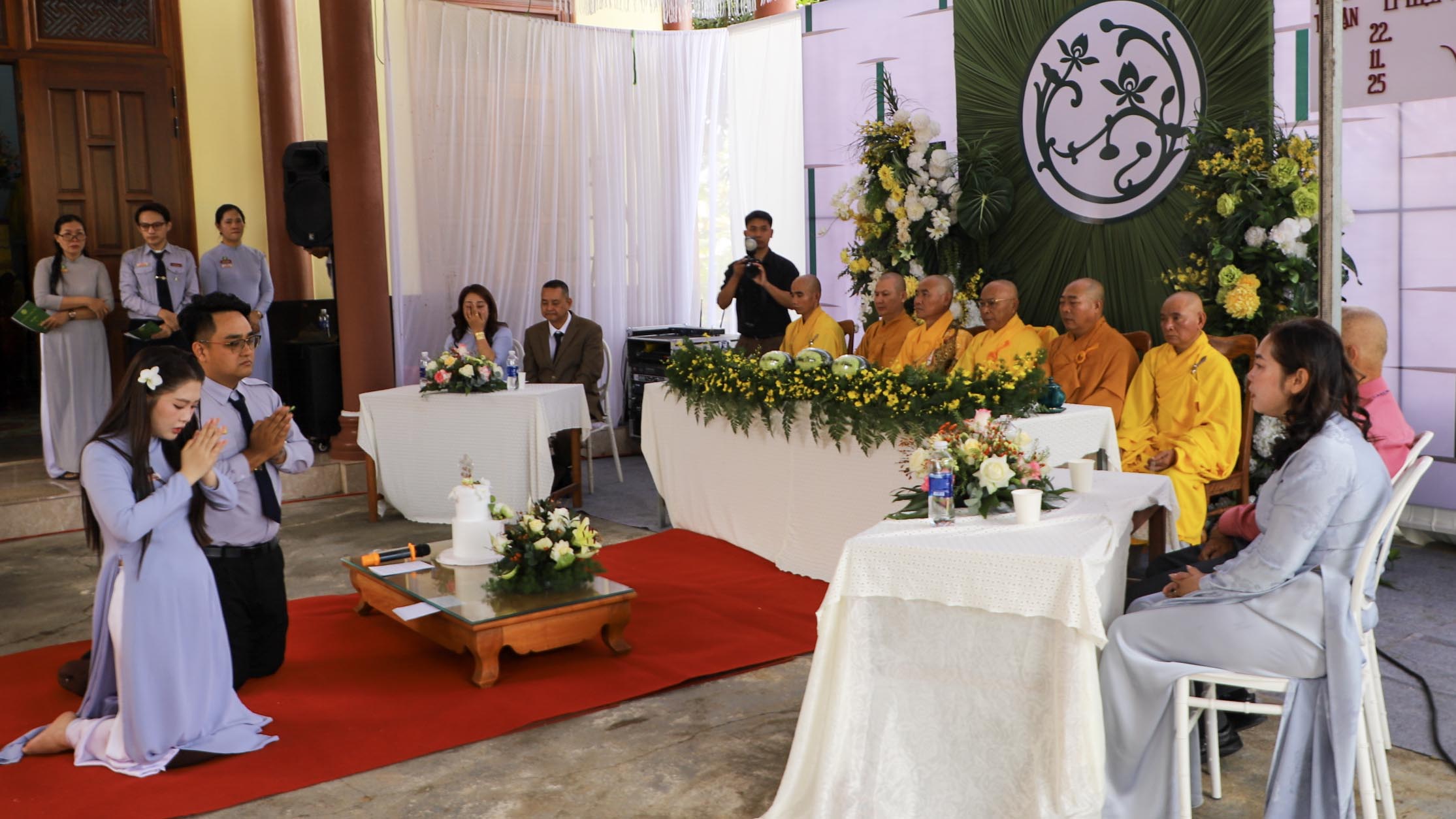Tiếp đó, đôi tân hôn đã bái lạy tứ đầu phụ mẫu, bày tỏ lòng hiếu kính đối với công ơn sinh thành dưỡng dục. Đại diện hai gia đình ông .... trân trọng gửi lời tri ân và cảm tạ đến chư Tôn đức, quý anh chị em GĐPT, cùng toàn thể thân hữu đã hiện diện và chúc phúc cho đôi trẻ.