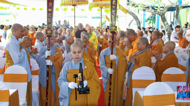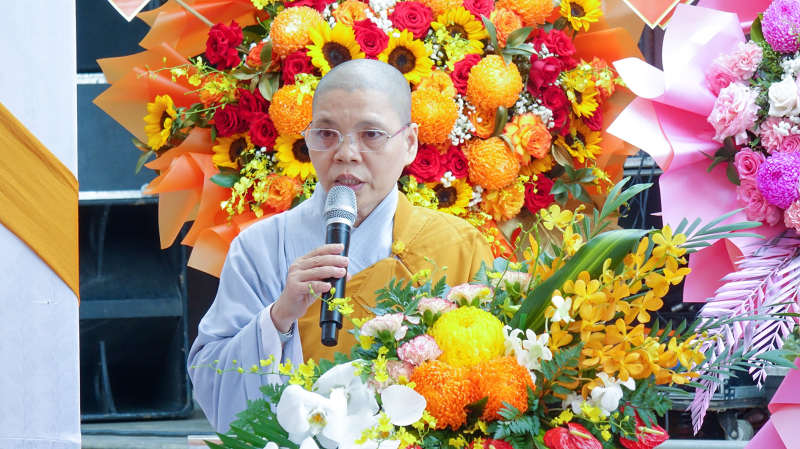 Cuối buổi lễ, Ni sư Thích Nữ Thông Tuệ, thay lời Ban Tổ chức, dâng lời cảm tạ, tri niệm ân chư Tôn giáo phẩm, quý cơ quan Ban ngành cùng toàn thể Phật tử đã hỗ trợ và góp phần thành tựu viên mãn cho đại lễ.