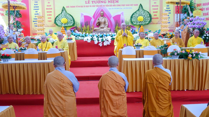 Sau nghi thức truyền thống của Phật giáo, Ni sư Thích nữ Chánh Định, đại diện Ban Tổ chức đã tuyên đọc diễn văn khai mạc, Ni sư bày tỏ ý nghĩa thiêng liêng của Lễ tưởng niệm Đức Thánh Tổ Kiều Đàm Di và chư Ni tiền bối hữu công, đồng thời nhấn mạnh trách nhiệm kế thừa, giữ gìn giới luật và phát huy vai trò của Ni giới trong thời đại hiện nay.